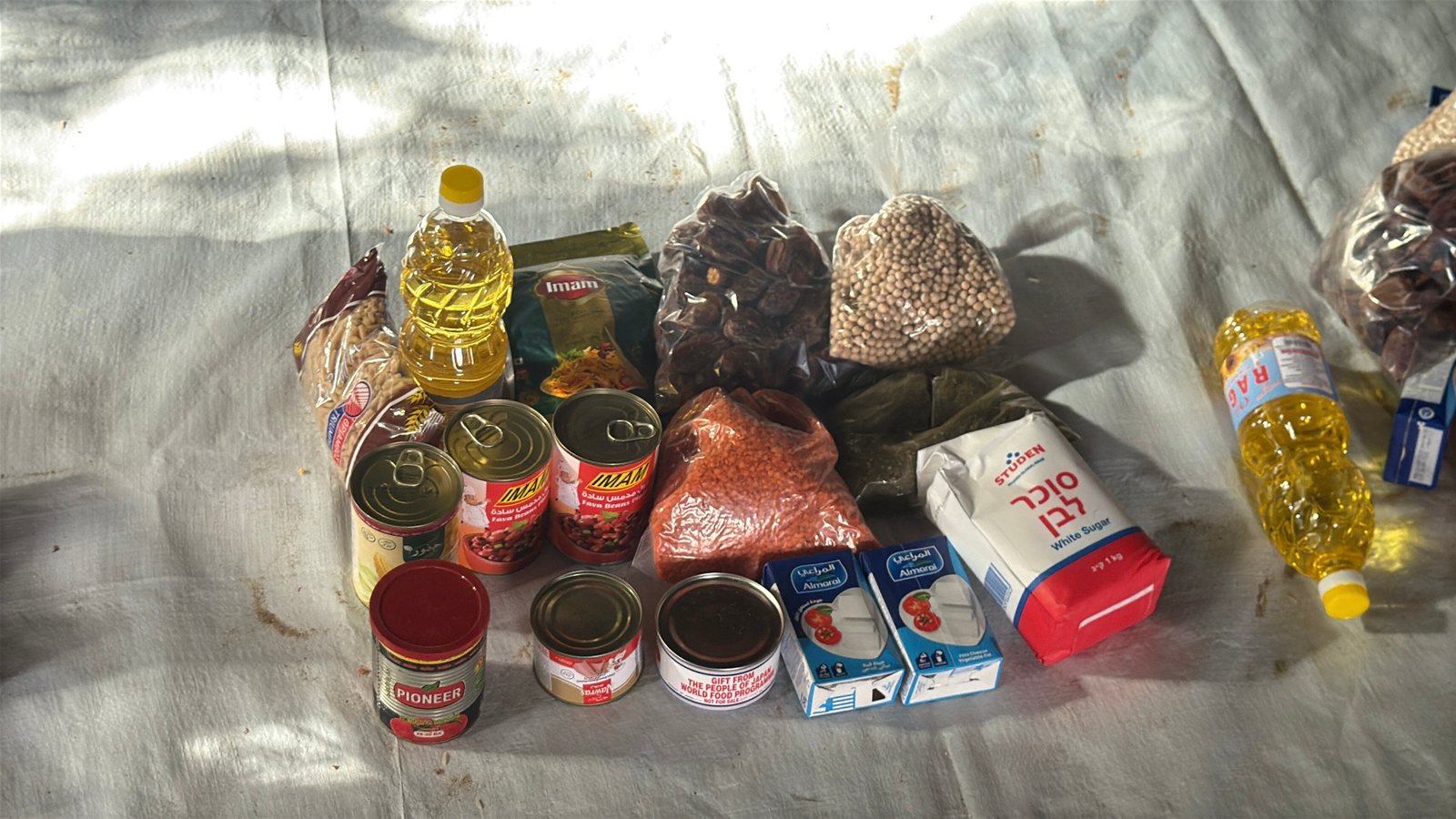 تشمل مواد أساسية مثل: الأرز، السكر، الطحين، الزيت، البقوليات، المعلبات، وغيرها من الاحتياجات الضرورية.